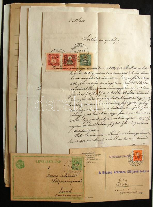 Beschreibung: Kis vegyes tétel: levelezőlapok, régi számlák, dokumentumok, nyomtatványok, levelek illetékbélyegekkel