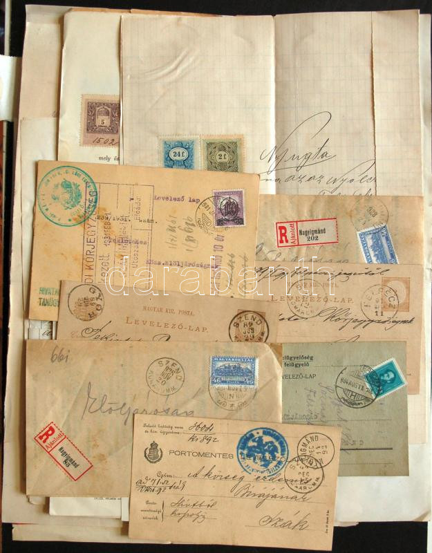 Beschreibung: Kis vegyes tétel: régi számlák, dokumentumok, nyomtatványok, levelek illetékbélyegekkel
