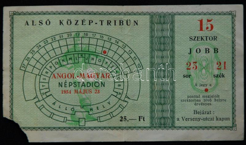 1954 május 23. Angol-magyar labdarúgó mérkőzés belépőjegye a Népstadio... https://www.darabanth.com/de/158-Fernauktion/158.0/Andere-Sammelgebiete/Drucksachen~600021/1954-majus-23-Angol-magyar-labdarugo-merkozes-belepojegye-a-Nepstadionba-A-legendas-63-~II497737
