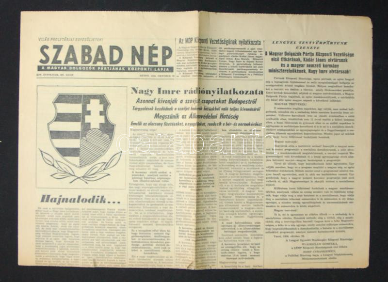 1956 Szabad Nép folyóirat XIV.évfolyam 297. száma a forradalom híreive... https://www.darabanth.com/de/158-Fernauktion/158.0/Andere-Sammelgebiete/Drucksachen~600021/1956-Szabad-Nep-folyoirat-XIVevfolyam-297-szama-a-forradalom-hireivel~II469239