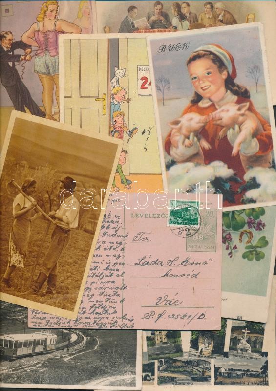 Beschreibung: Hódmezővásárhelyi nyomtatvány tétel, benne térkép, képeslapok, levelek