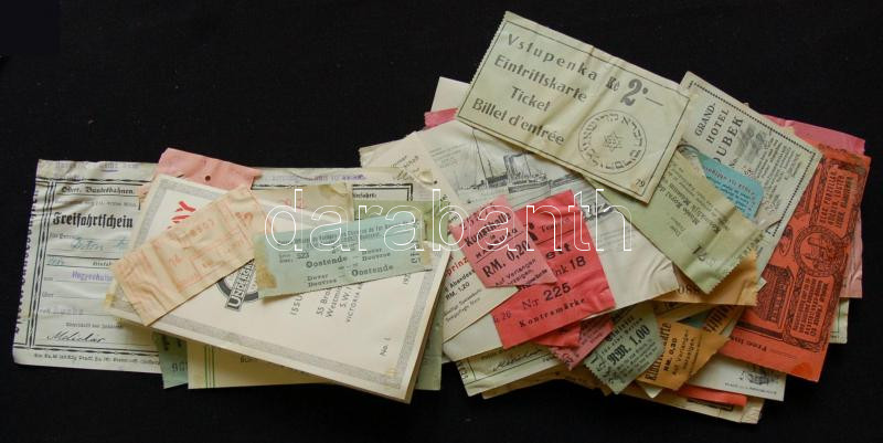 Beschreibung: cca. 1940 vegyes nyomtatvány tétel ,cca.100 db háború előtti utazási jegy, belépő...