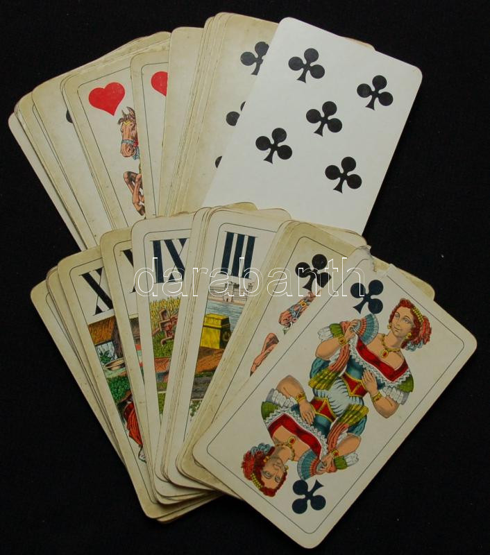 Beschreibung: cca. 1940. Offset és Játékkártya Nyomda: 44 lapos tarokk kártya 1 lap sérült./