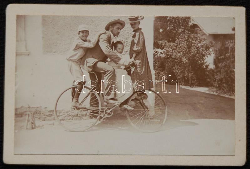 1898 Bicikliző családot ábrázoló keményhátú fotó 9x6 cm https://www.darabanth.com/de/158-Fernauktion/158.0/Andere-Sammelgebiete/Foto~173/1898-Biciklizo-csaladot-abrazolo-kemenyhatu-foto-9x6-cm~II503101