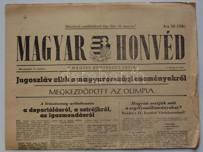 1956. november 22. I. évf. 10.szám Magyar Honvéd. A Magyar Honvédség l... https://www.darabanth.com/de/158-Fernauktion/158.0/Andere-Sammelgebiete/Historische-Dokumenten-Handschriften~177/1956-november-22-I-evf-10szam-Magyar-Honved-A-Magyar-Honvedseg-lapja-Benne-a-forradalom-~II498374
