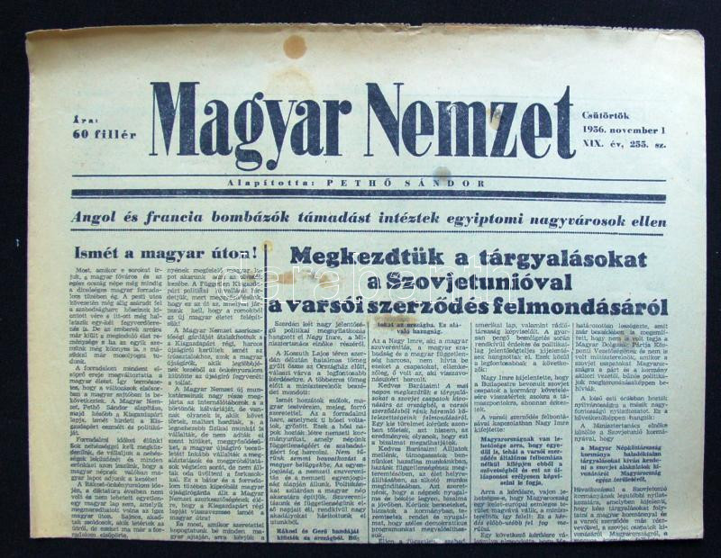 Beschreibung: 1956.november 1. A Magyar Nemzet. XII. évf. 255.szám Benne a forradalom híreivel.