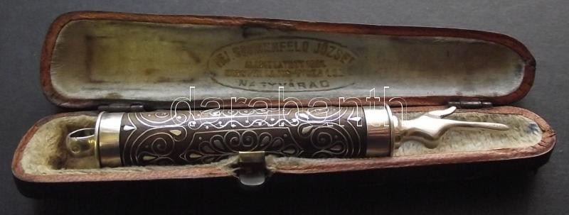 Beschreibung: cca 1900 Mintás fanyelű ezüstberakásos tóramutató nem hozzávaló bőr tokkal /