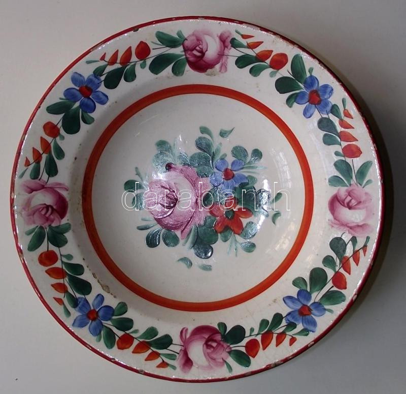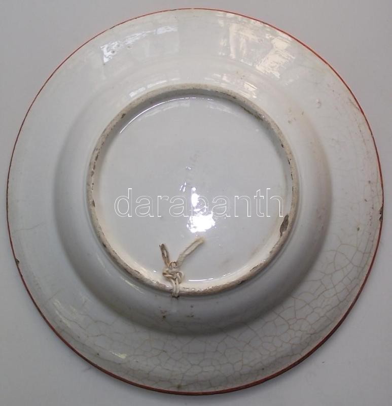 cca 1900 Kézzel festett mázas Hollóházi kerámia falitányér benyomott jelzéssel, kis lepattogzásokkal /
