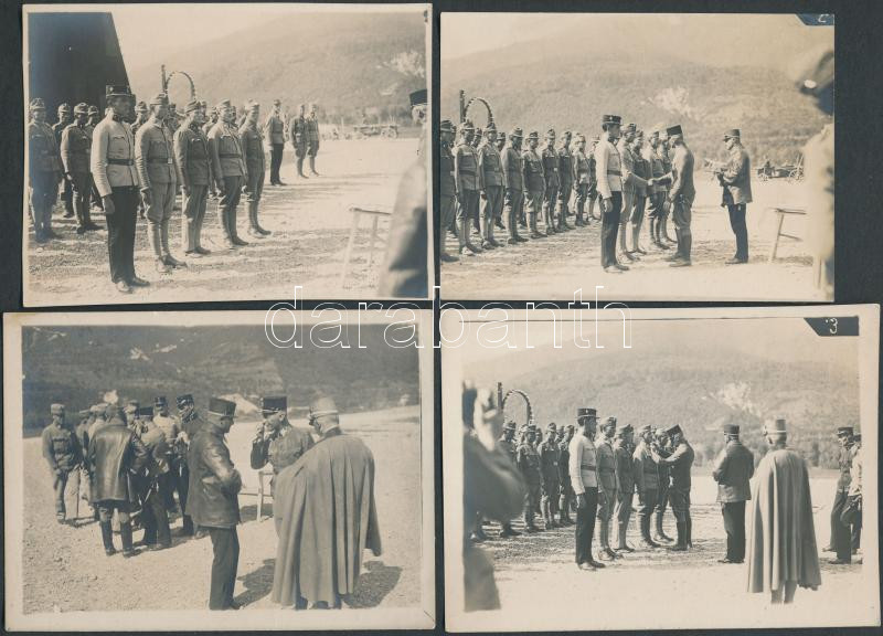 Beschreibung: 10 db I. világháborús harctéri fotó, diaszemlékről, magas rangú katonatisztekkel /
