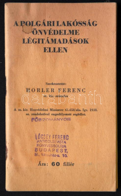 Horler Ferenc m. kir. százados: A polgári lakósság önvédelme a légítám... https://www.darabanth.com/de/158-Fernauktion/158.0/Andere-Sammelgebiete/Militar~181/Horler-Ferenc-m-kir-szazados-A-polgari-lakossag-onvedelme-a-legitamadasok-ellen-1938~II498443
