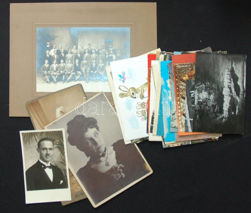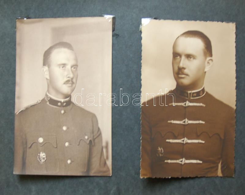 cca 1930 Fotó hagyaték tétel fotóalbumba rendezve, benne Felvidéki Bevonulás képeivel, sok katonai portréval, keményhátú fotókkal, néhány modern képeslappal