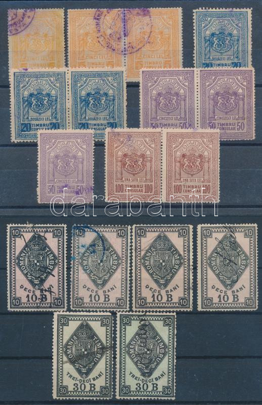 Beschreibung: Román konzulátusi bélyegek 11 db + 6 db illetékbélyeg, 2 stecklapon