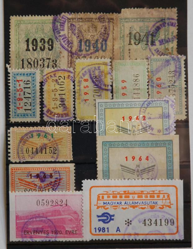 Beschreibung: 14 db klf. MÁV arcképes igazolványok meghosszabbítási bélyegei