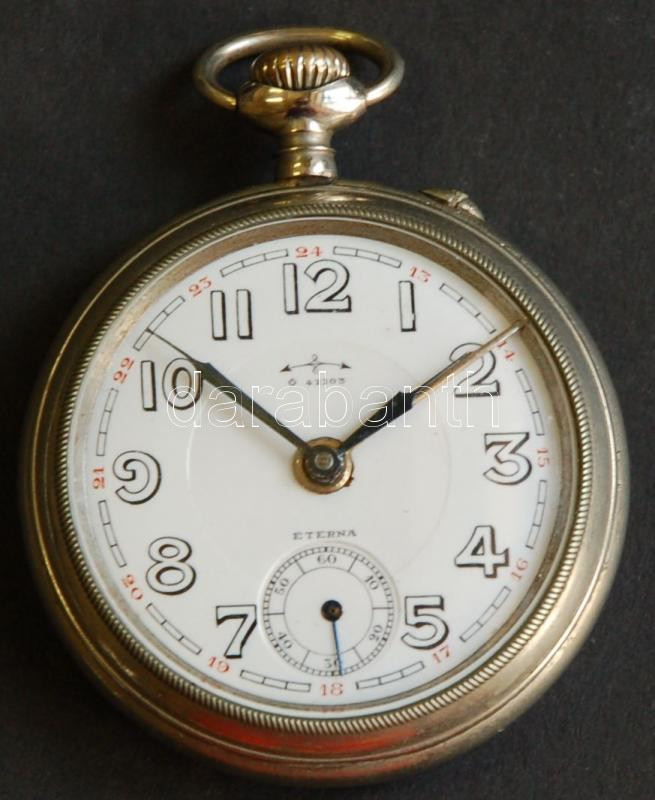 cca. 1910 Eterna márkájú működőképes ébresztős zsebóra másodpercmutató... https://www.darabanth.com/de/158-Fernauktion/158.0/Andere-Sammelgebiete/Uhren~199/cca-1910-Eterna-markaju-mukodokepes-ebresztos-zsebora-masodpercmutatoval-porcelan-sza~II502815