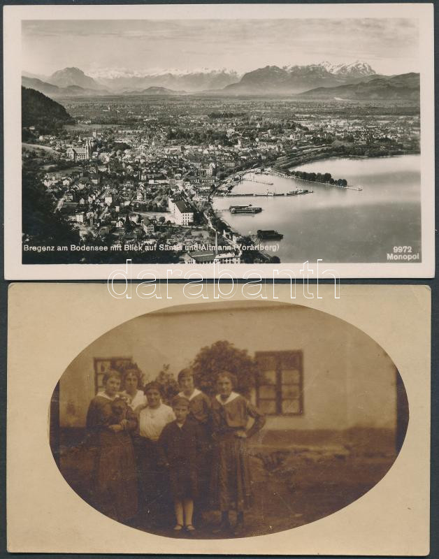 Beschreibung: 15 db vegyes régi képeslap, városképek és fotólapok, illetve egy leporello