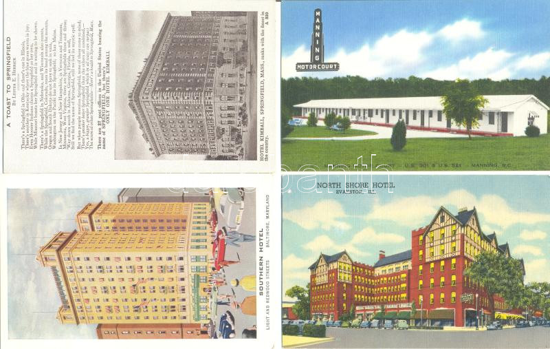 Beschreibung: USA - 45 db régi városképes lap, amerikai városok hotelei, köztük sok megíratlan
