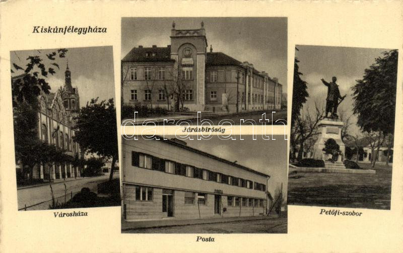 Kiskunfélegyháza Városháza, Járásbíróság, Petőfi szobor, posta https://www.darabanth.com/de/158-Fernauktion/158.0/Ansichtskarten/Ungarn~600008/Kiskunfelegyhaza-Varoshaza-Jarasbirosag-Petofi-szobor-posta~II499376