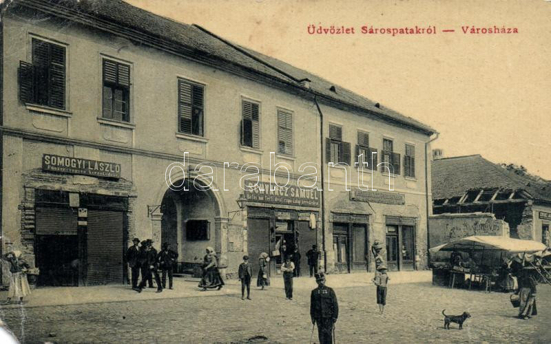 Sárospatak városháza Somogyi László fűszeres és Schvarz Sámuel cipész ... https://www.darabanth.com/de/158-Fernauktion/158.0/Ansichtskarten/Ungarn~600008/Sarospatak-varoshaza-Somogyi-Laszlo-fuszeres-es-Schvarz-Samuel-cipesz-uzletevel-b~II498765