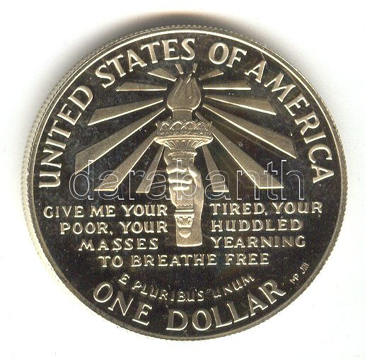 Amerikai Egyesült Államok 1986S. 1$ Ag "Szabadságszobor" eredeti bársony dísztokban és dobozban, amerikai tanúsítvánnyal T:PP