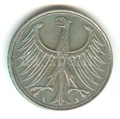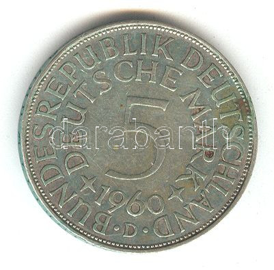 Germany Federal Republic 1960D 5 Mark Ag C:Vf https://www.darabanth.com/de/158-Fernauktion/158.0/Numismatik/Auslandische-Munzen~600108/NSZK-1960D-5M-Ag-T2--3Cbr3EGermany-Federal-Republic-1960D-5-Mark-Ag-CVf~II499797