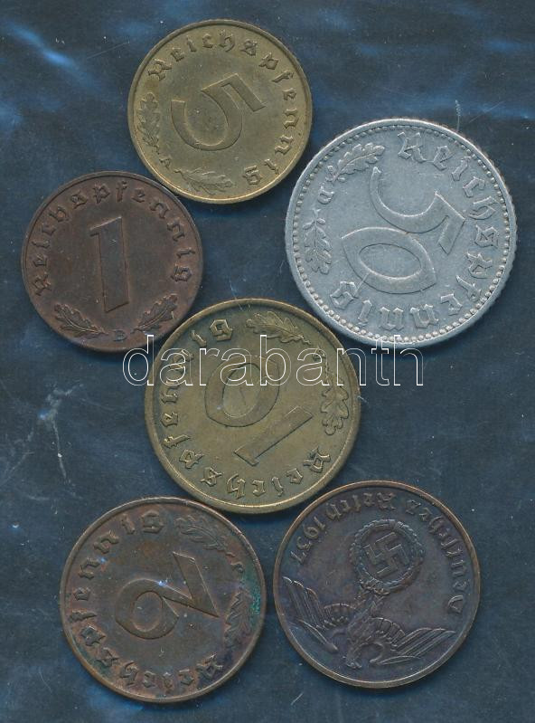 Beschreibung: Német 3. Birodalom 1937-1941. 1Pf + 2Pf (2x) + 5Pf + 10Pf + 50Pf T:2,2-