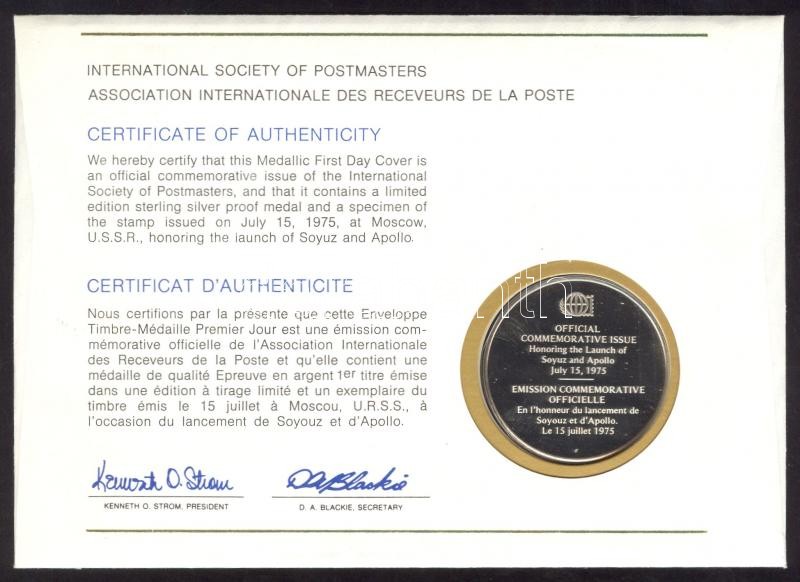 Soviet Union 1975. "Soyuz and Apollo" Ag(925) medallion (20g) / International Society of Postmasters - Medallic First Day Cover with Dutch information C:PP