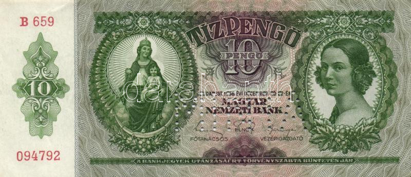 1936. 10P sorszámozott hamis "MINTA" perforációval T:I https://www.darabanth.com/de/158-Fernauktion/158.0/Numismatik/Ungarische-Banknoten~600103/1936-10P-sorszamozott-hamis-MINTA-perforacioval-TI~II499993