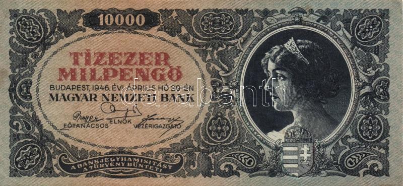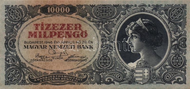 1946. 10.000MP (5x) színváltozatok és nyomat eltolódások T:II https://www.darabanth.com/de/158-Fernauktion/158.0/Numismatik/Ungarische-Banknoten~600103/1946-10000MP-5x-szinvaltozatok-es-nyomat-eltolodasok-TII~II503726