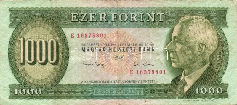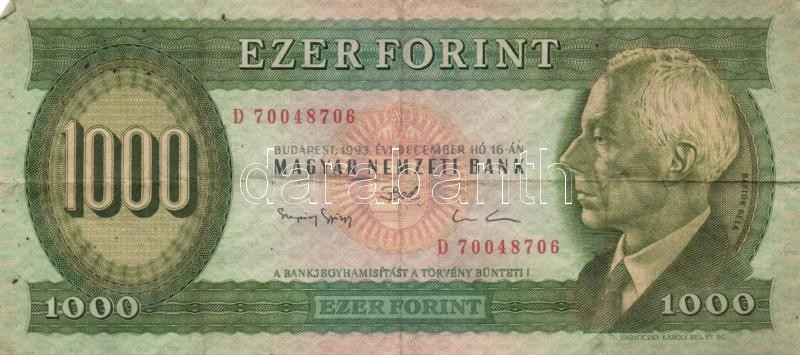 1993. 1000Ft (2x) "D és E" T:III https://www.darabanth.com/de/158-Fernauktion/158.0/Numismatik/Ungarische-Banknoten~600103/1993-1000Ft-2x-D-es-E-TIII~II503319