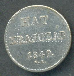 Beschreibung: 1849NB 6Kr Ag előoldal körirati "Y"-ja jobbra eltolódott! T:2