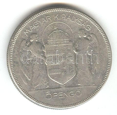 1930. 5P Ag "Horthy jobbra" T:3 https://www.darabanth.com/de/158-Fernauktion/158.0/Numismatik/Ungarische-Munzen~600104/1930-5P-Ag-Horthy-jobbra-T3~II500104