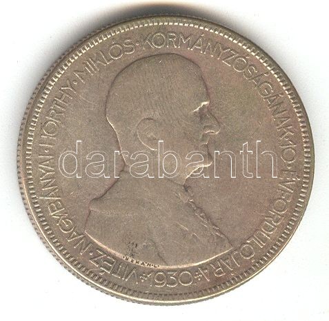 1930. 5P Ag "Horthy jobbra" T:3 https://www.darabanth.com/de/158-Fernauktion/158.0/Numismatik/Ungarische-Munzen~600104/1930-5P-Ag-Horthy-jobbra-T3~II500965