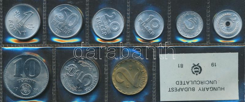 1981. 2f-10Ft 9db klf érmés forgalmi sor fóliatokban T:1 https://www.darabanth.com/de/158-Fernauktion/158.0/Numismatik/Ungarische-Munzen~600104/1981-2f-10Ft-9db-klf-ermes-forgalmi-sor-foliatokban-T1~II501347