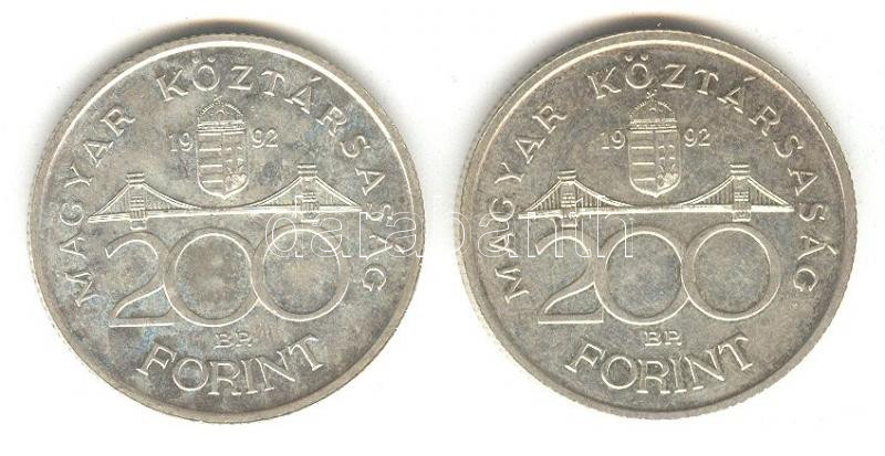 1992. 200Ft Ag "MNB" (2x) T:2- https://www.darabanth.com/de/158-Fernauktion/158.0/Numismatik/Ungarische-Munzen~600104/1992-200Ft-Ag-MNB-2x-T2-~II499409