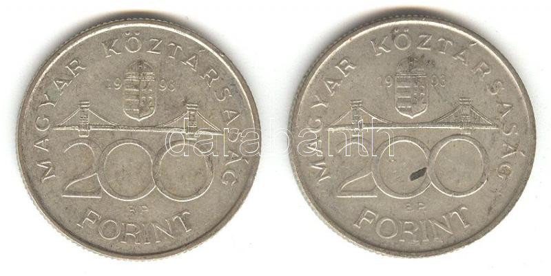 1993. 200Ft Ag "MNB" (2x) T:2- https://www.darabanth.com/de/158-Fernauktion/158.0/Numismatik/Ungarische-Munzen~600104/1993-200Ft-Ag-MNB-2x-T2-~II499427