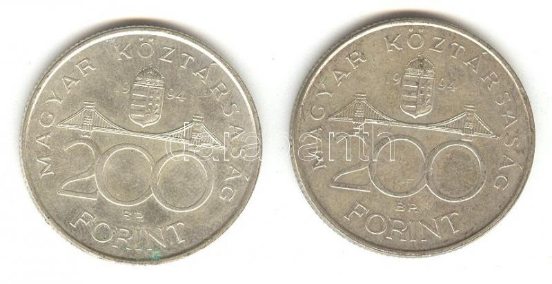 1994. 200Ft Ag "Deák" (2x) T:2- https://www.darabanth.com/de/158-Fernauktion/158.0/Numismatik/Ungarische-Munzen~600104/1994-200Ft-Ag-Deak-2x-T2-~II499404