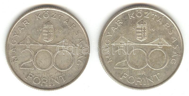 1994. 200Ft Ag "Deák" (2x) T:2- https://www.darabanth.com/de/158-Fernauktion/158.0/Numismatik/Ungarische-Munzen~600104/1994-200Ft-Ag-Deak-2x-T2-~II499428