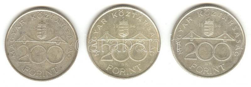 1994. 200Ft Ag "Deák" (3x) T:2- https://www.darabanth.com/de/158-Fernauktion/158.0/Numismatik/Ungarische-Munzen~600104/1994-200Ft-Ag-Deak-3x-T2-~II499408
