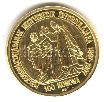 "Magyar aranypénzek utánveretben - Ferenc József jubileumi 100 korona"... https://www.darabanth.com/de/158-Fernauktion/158.0/Numismatik/Ungarische-Munzen~600104/Magyar-aranypenzek-utanveretben--Ferenc-Jozsef-jubileumi-100-korona-aranyozott-Ag-emlekerem-~II499949