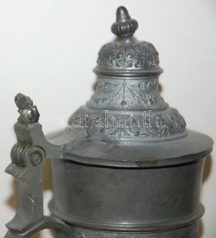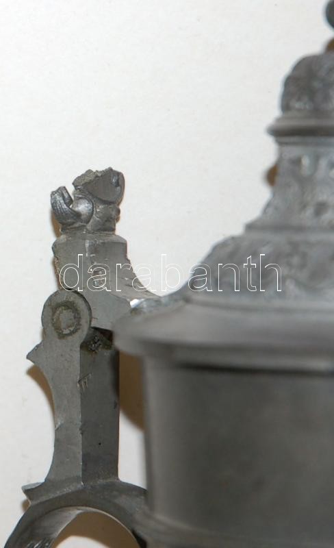 Beschreibung: Címeres, fedeles ón kupa apró hibával 20 cm