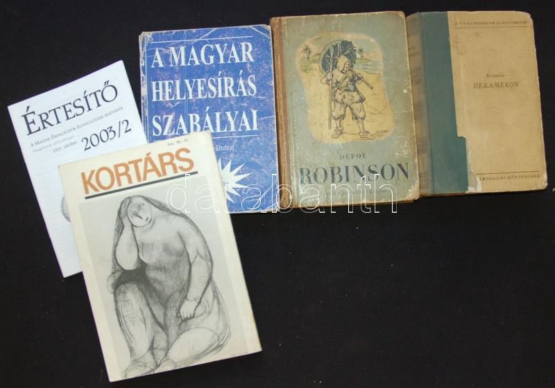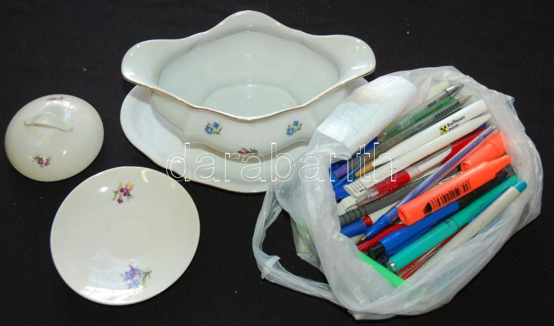 Vegyes bolha tétel: könyvek (köztük: A tanácstörvény magyarázata 1976-ból, Boccaccio: Dekameron stb.), folyóiratok (pl: Hungarian Museums), néhány porcelán és egy zacskó toll