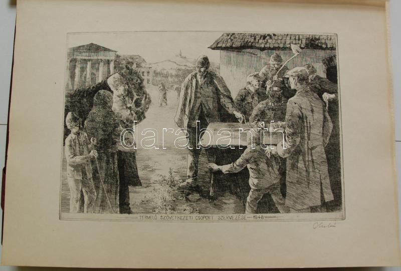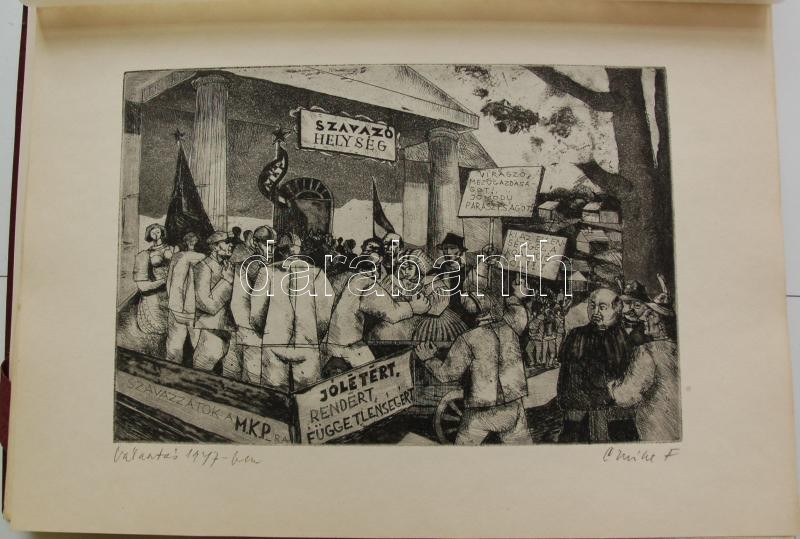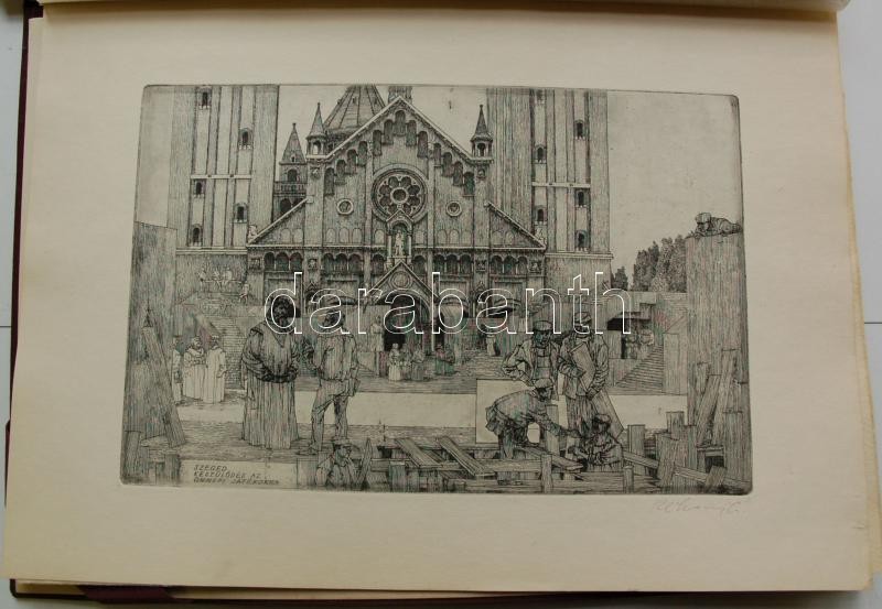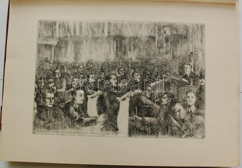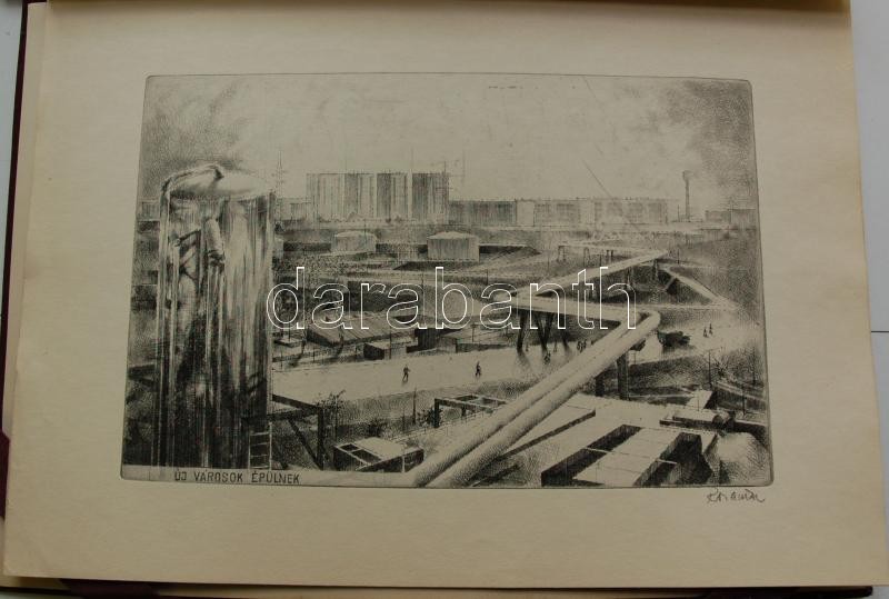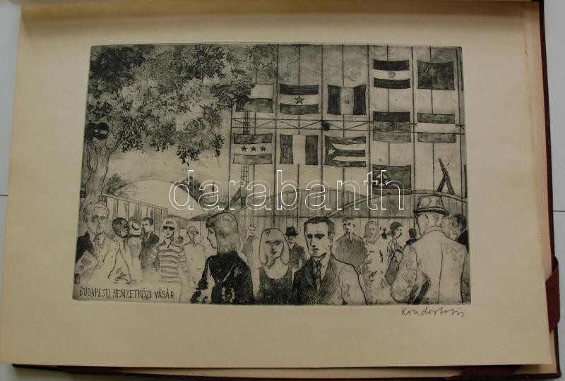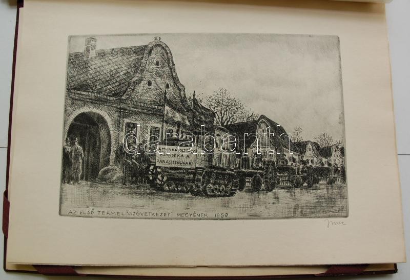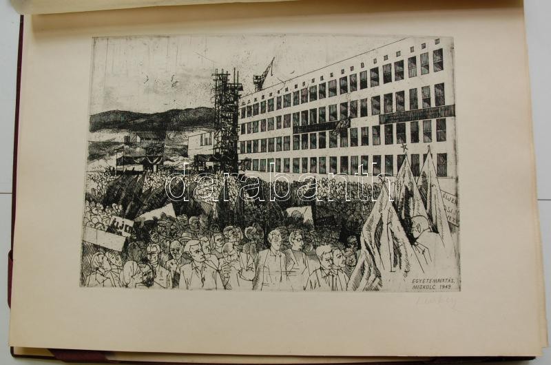 Bp. 1970. k.n. Varga Nándor, Pásztor Gábor, Gars Gábor, Lukovszky László, Czinke Ferenc, Bárczy Pál, Gy. Molnár István, Würtz Ádám, Hincz Gyula, Stettner Béla, Rozarits Tibor, Rékássy Csaba, Raszler Károly, Kerti Károly, Végvári János, Bánffy József, Krajcsirovits Henrik rézkarca, mintás hártyapapírral, szép állapotban. Méret: 280 x 400 mm. A 17 mű mindegyike sajátkezűleg aláírt. 2 sztl. lev. (Tartalomjegyzék, Bevezető szöveg) Kék, jó állapotú kiadói mappában, aranyozott felirattal. Korlátozott példányban jelent meg. Ritka.