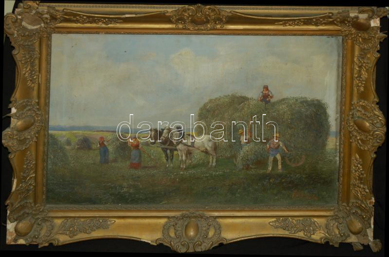 Beschreibung: Olvashatatlan jelzéssel: Szénarakodás. Olaj, vászon 70x50 cm Keretben