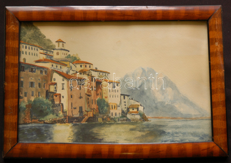 Beschreibung: Szántó Jenő: Dalmácia, akvarell-papír, üvegezett keretben 22x32cm