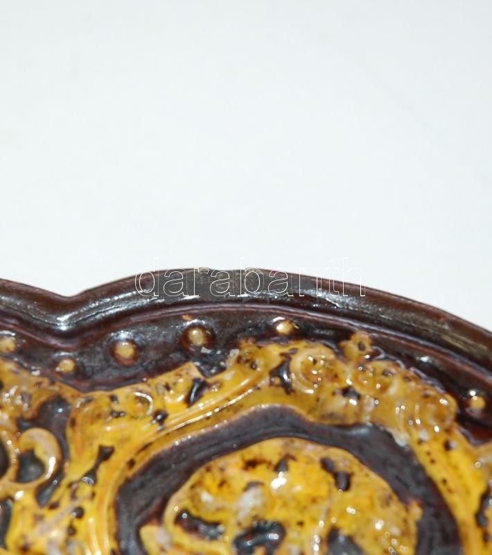 cca 1880 Zsolnay festett porcelánfajansz dísztányér különböző vadállatokkal. Jelzés: "Z.W. Pécs 132." 3 kis csorbával. / cca 1880 Zsolnay fayance plate with wild animals. 3 small nicks. d: 24 cm