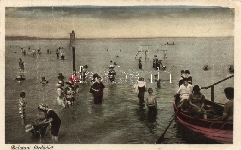 Beschreibung: Balatoni életkép, strand, Divald (fa)