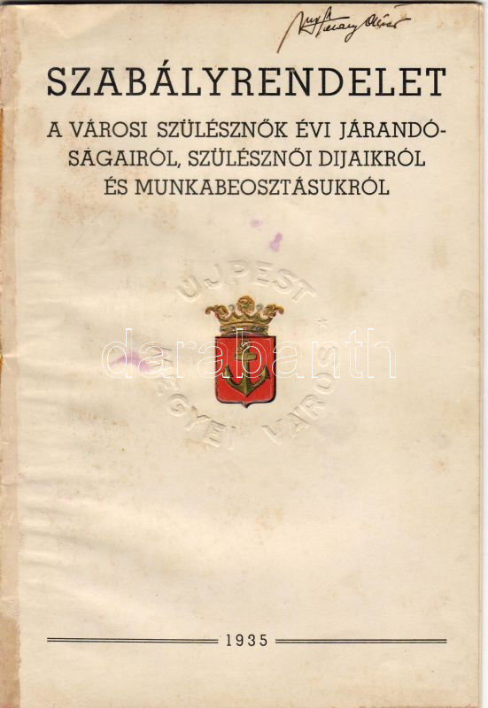 Magyarország 1935 Újpest város szabályrendelete a szülésznők járandósá... https://www.darabanth.com/de/16-Fernauktion/16.0/Andere-Sammelgebiete/~117/Magyarorszag-1935-Ujpest-varos-szabalyrendelete-a-szulesznok-jarandosagairol-dijairol-~II27046