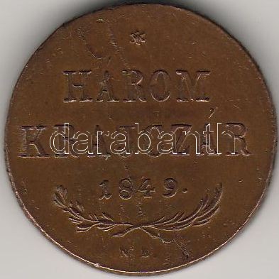 1849N.B. 3Kr Szabadságharc-veret T:1/2 https://www.darabanth.com/de/16-Fernauktion/16.0/Numismatik/~116/1849NB-3Kr-Szabadsagharc-veret-T12~II20151