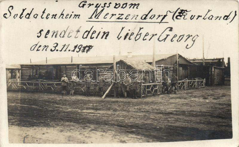 Mercendarbe, Merzendorf; military barracks photo https://www.darabanth.com/de/16-Gross-Auktion/16.1/Ansichtskarten-Ausland/Lettland~4910/Mercendarbe-Merzendorf-military-barracks-photo~II674833