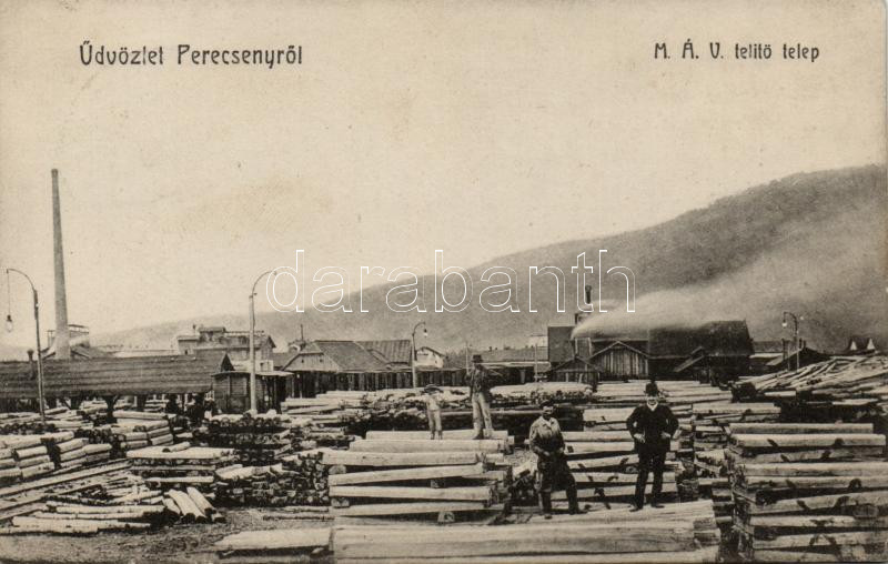 Perecseny MÁV railway service station https://www.darabanth.com/de/16-Gross-Auktion/16.1/Ansichtskarten-Ungarn/Karpatenukraine~4885/Perecseny-MAV-railway-service-station~II698834